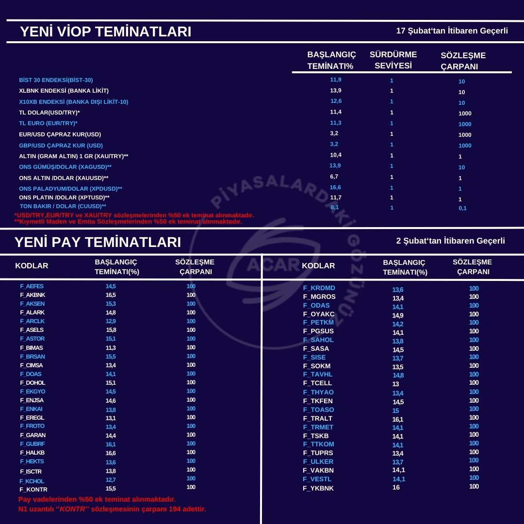 VİOP Başlangıç Teminatları ve Kaldıraç Oranları için tıklayın.