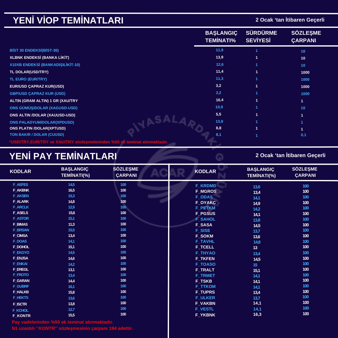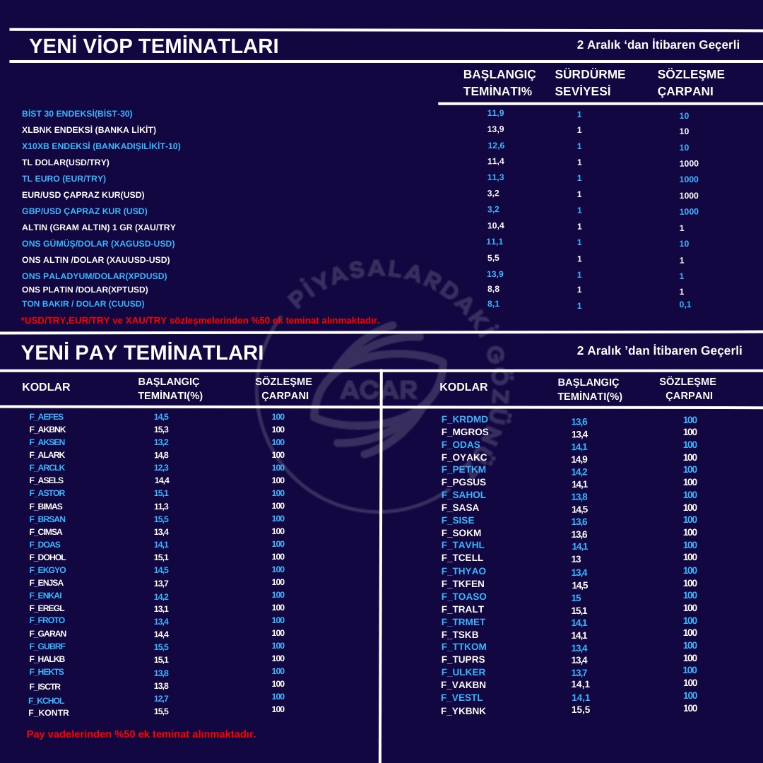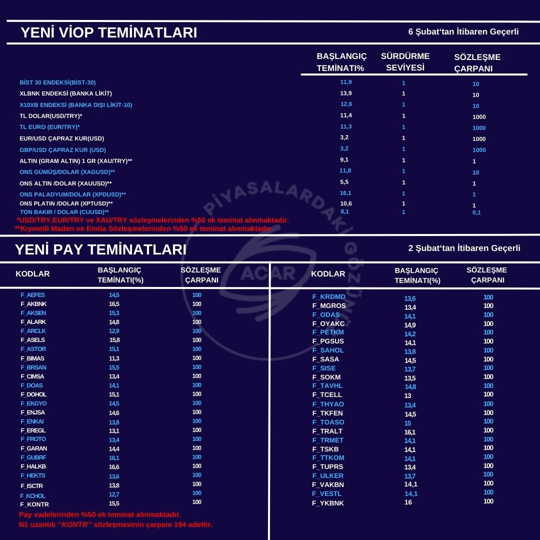VİOP Başlangıç Teminatları ve Kaldıraç Oranları için tıklayın.